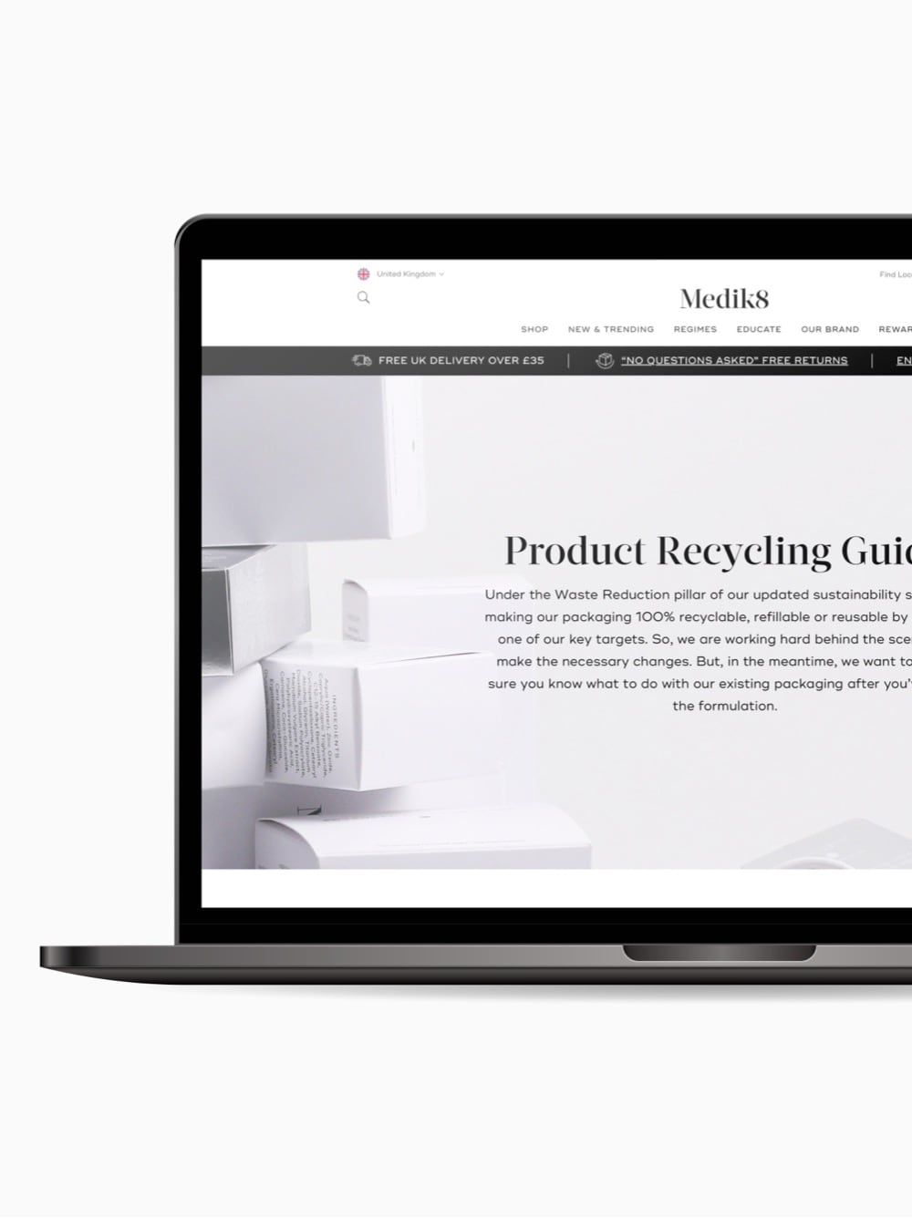 While we are actively working on making changes to our packaging, we understand the importance of providing our customers with the necessary information for the responsible disposal of our empty packaging. We want to empower them to lead more sustainable lives and ensure that recyclable materials are properly sorted and recycled. To facilitate this, we have launched a dedicated page on our website; our Packaging Recyclability Guide. This page serves as an important resource, providing clear guidance on how to correctly dispose of our packaging and ensure it is directed to the appropriate waste stream. We are also replacing virgin materials with PCR (Post-Consumer Recyclate) which means fewer resources need to be extracted from the ground or nature. We are already using up to 40% recycled glass in our amber bottles, 100% PCR plastic in our Professional bottles, and 52% PCR in our tubes. We are also using 85% recycled cardboard for our e-commerce delivery boxes.